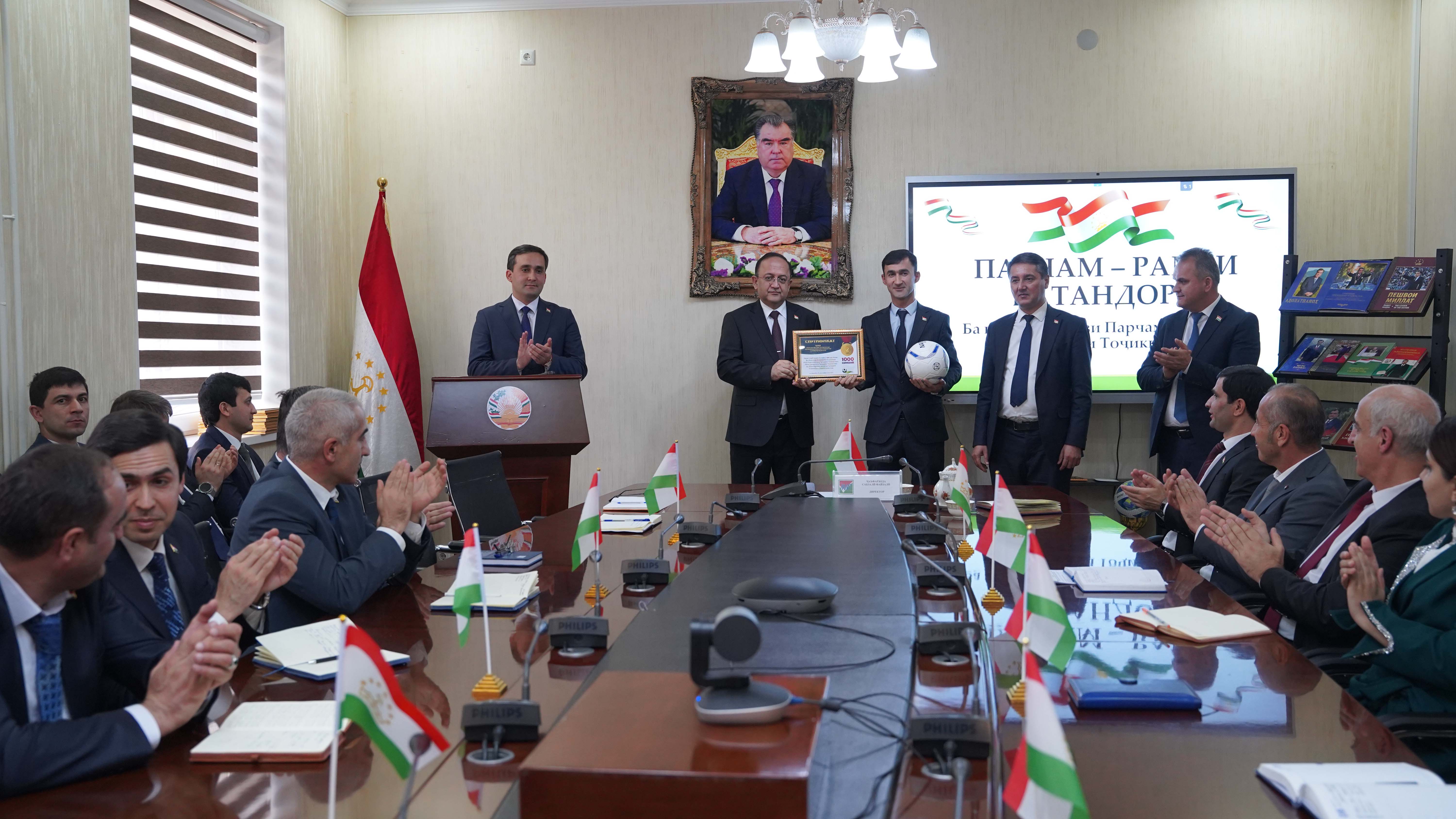 Дар анҷоми ҷаласа ғолибони мусобиқаи варзишӣ оид ба футболи хурд, ки ба муносибати Рӯзи Парчами давлатии Ҷумҳурии Тоҷикистон дар байни кормандони раёсату шуъба ва бахшҳои Марказ гузаронида шуда буд, бо ҷоизаву мукофоти пулӣ ва туҳфаҳои хотиравӣ қадр карда шуданд.