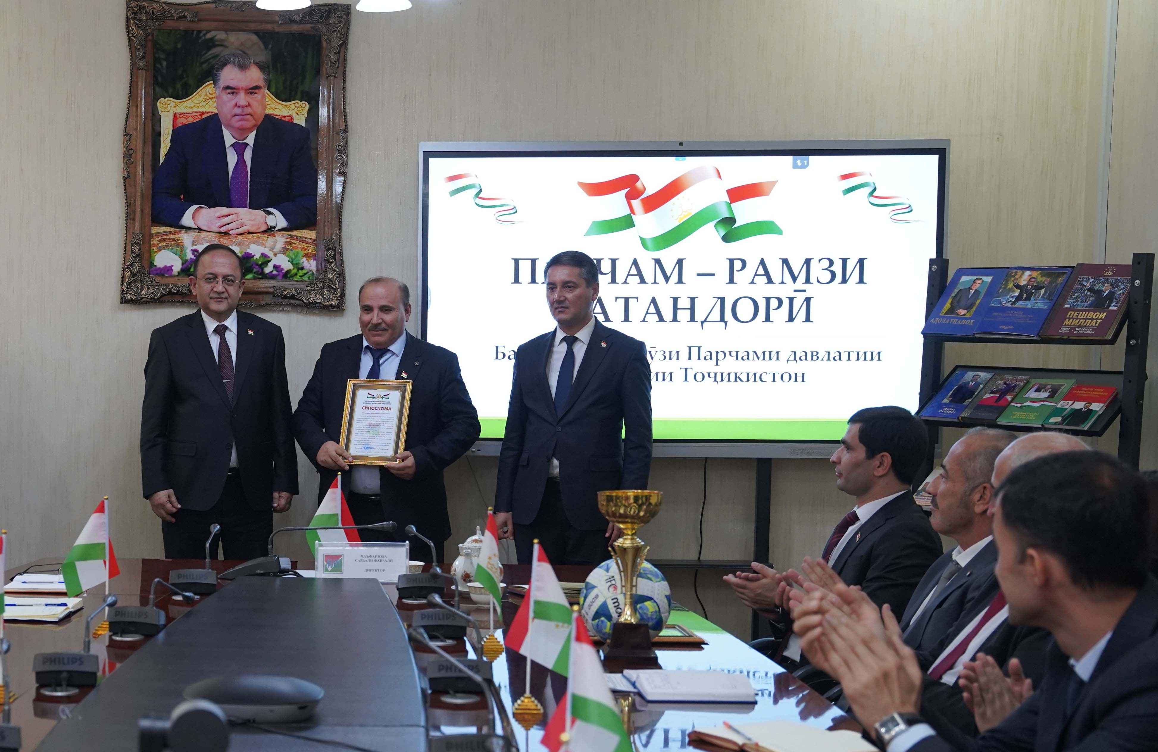 Дар оғоз директори Марказ Ҷаъфарзода Сабзалӣ Файзалӣ кормандони Марказро бо Рӯзи Парчами давлатии Ҷумҳурии Тоҷикистон табрик намуда, қайд кард, ки Парчам яке аз рамзҳои давлатии Ҷумҳурии Тоҷикистон ба шумор меравад. Парчами давлатии Ҷумҳурии Тоҷикистон рамзи ваҳдат, истиқлол ва ифтихори миллии мост. Ин рамзест, ки ормонҳои миллию давлатӣ ва роҳи тайкардаамонро дар тули таърих таҷассум мекунад.