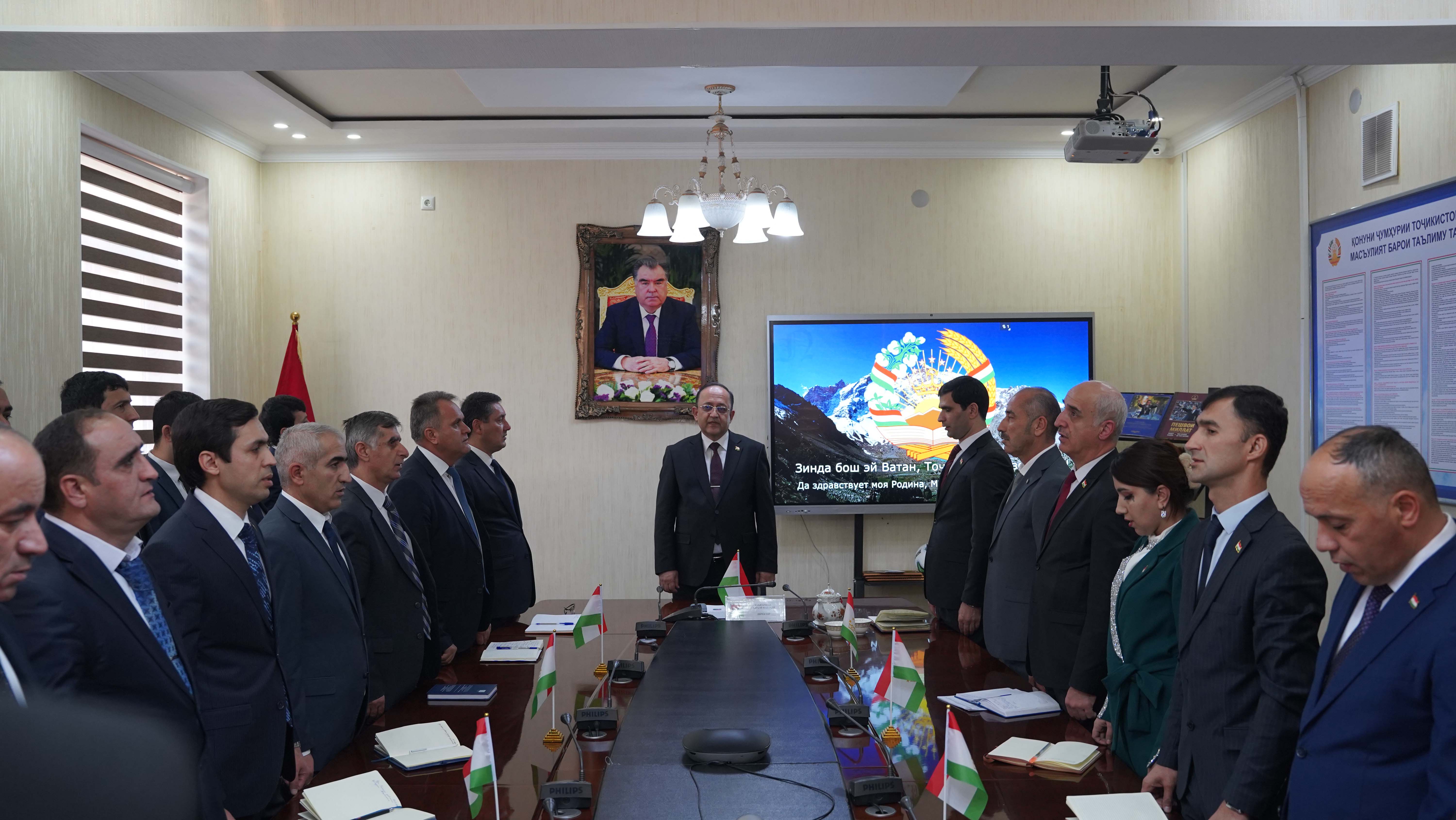 Дар идомаи ҷаласа сардори раёсати таҳияи маводди имтиҳони Марказ Азимов Ҷамшед ва сармутахассиси фанни забони тоҷикии раёсати таҳияи маводди имтиҳон Сабуров Абдуҳаннон дар боби арҷгузорию эҳтироми муқаддасоти миллӣ ва муҳаббат ба Ватан суханронӣ намуданд.